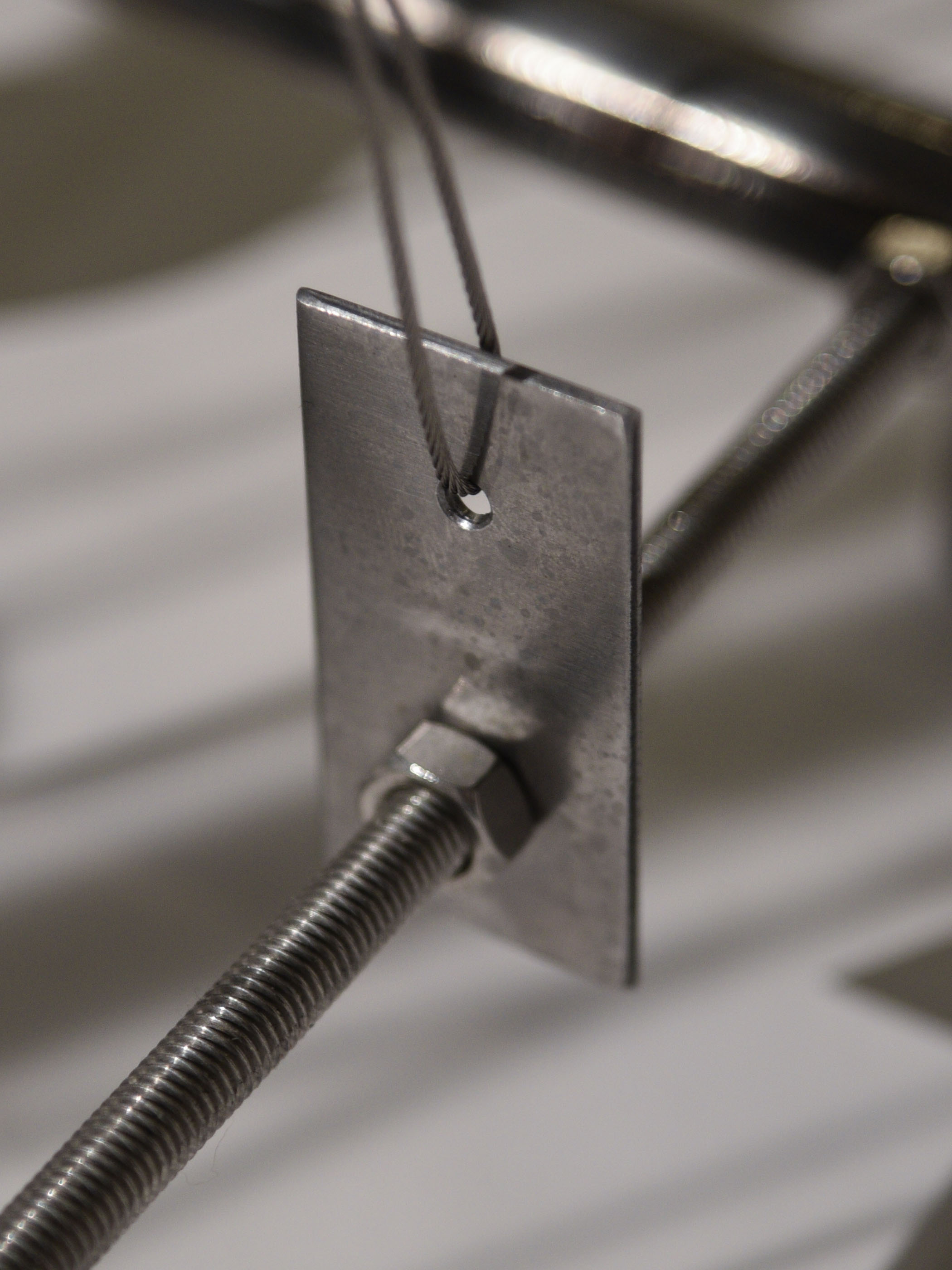 Steel details including pulleys, brackets, counterweights and turnbuckles