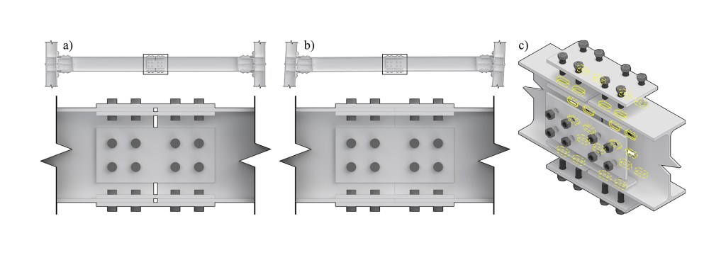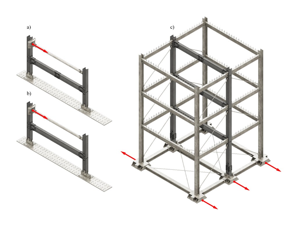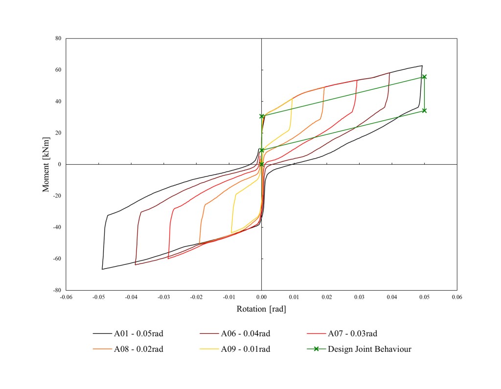 Through high-fidelity Finite Element Analysis (FEA), this research contributes to the design of Self-Centring Moment-Resisting Steel Frames (SC MRFs) for seismic resilience. As part of the SC-RESTEEL project, it focuses on validating the performance of novel Self-Centring Beam-to-Column Joints (SC BCJs) ahead of quasi-static tests and large-scale shaking table tests. To enhance the BCJ’s self-centring behaviour, beams are fitted with slotted splice connection at mid-span. Using solid and wire-part FE models in Abaqus, this study simulates joint and frame behaviour, assessing Moment-Rotation (M-R) relationships, self-centring capability, and plastic as well as frictional energy dissipation.